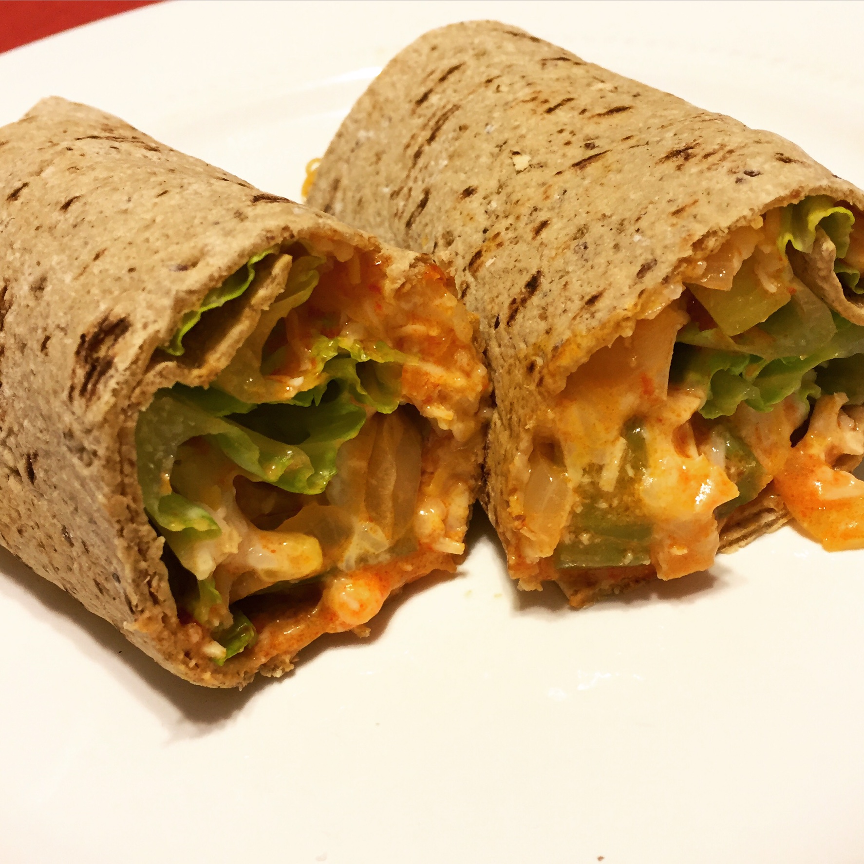 Annnnd…voila! That whole process took just 20 minutes to create a restaurant-quality easy-peasy buffalo chicken wrap that’s chock full of fiber, veggies, and protein.