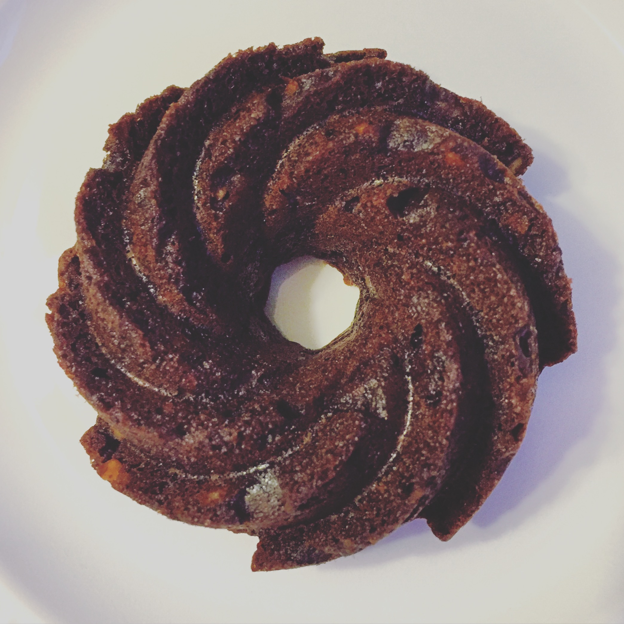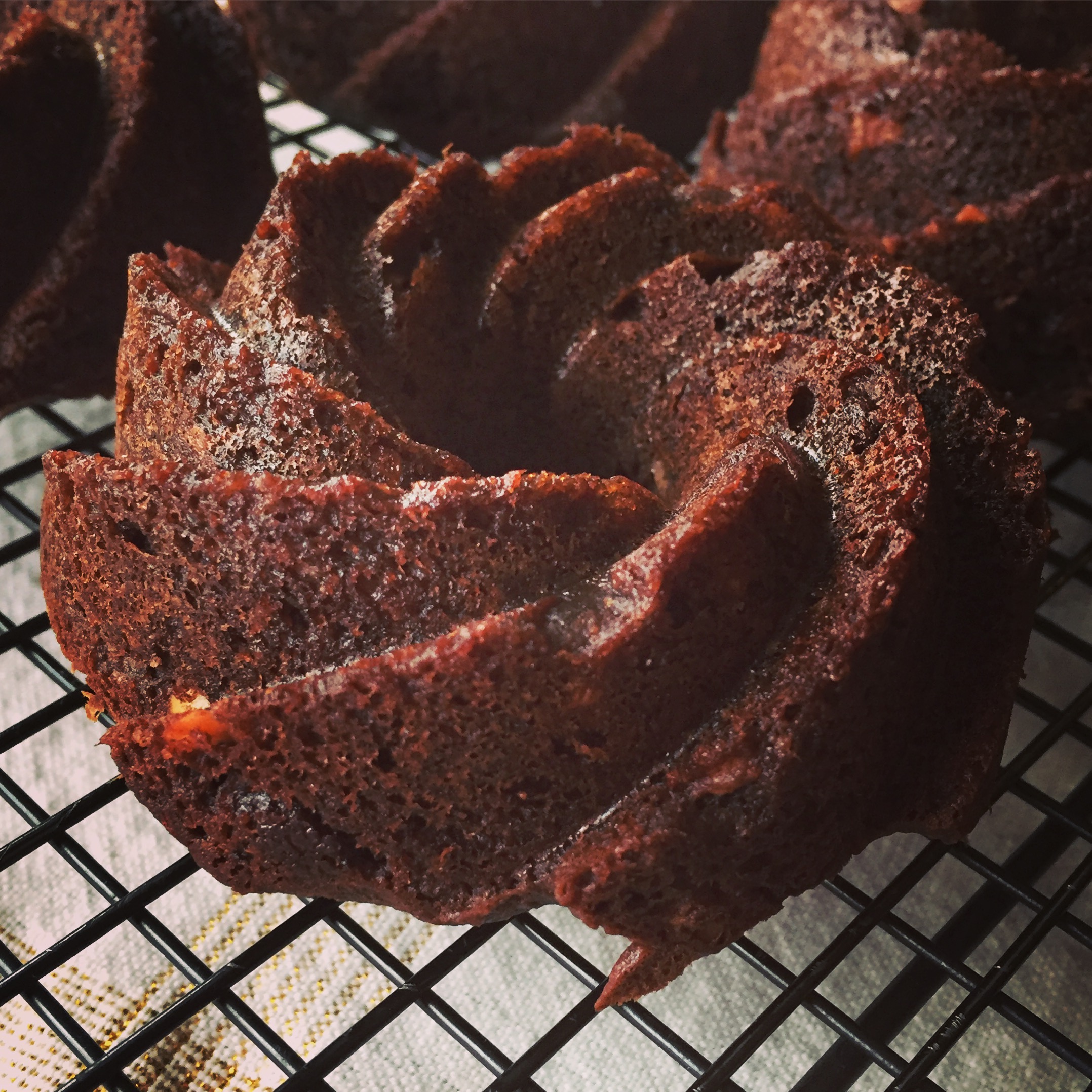 After you take a moment to admire the beauty of your perfectly-portioned personal mini-bundt, the first bite is killer: you get a burst of chocolatey-goodness right away, but then as you continue to eat the flavors of the peanut butter and the banana shine through. And then, just before your swallow and just as you ask yourself “Am I in heaven?“, you get a brief taste and crunch of semi-sweet chocolate and a slightly salty peanut that enhances the flavor profile of the entire bite.